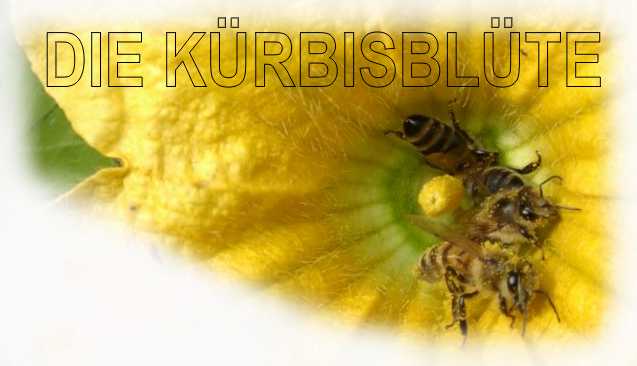 Kürbisblüten schmecken sehr gut in Teig gebraten. Achten Sie auf Bienen, diese sitzen oft zu mehreren eng beieinander am Blütenboden und sind nach meiner Meinung sehr friedlich! Die Bienen sind von der Kürbisblüte so “verzaubert”, denn sie trennen sich ungern. Sind sie süchtig nach Kürbisnektar? Ich bin kein Fachmann, aber da gibt es noch Wissenslücken!